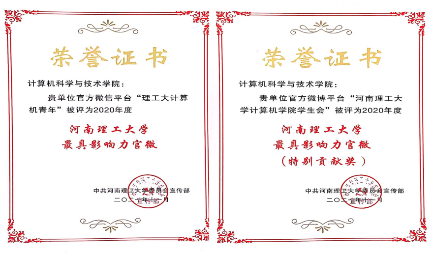 2020年度学院团委在校团委和公司党委的正确领导下,两个新媒体平台在内容制作、文化宣传、服务师生等方面富有特色和成效,通过这两个平台为学院新媒体建设作出支持和贡献,推动了学校及学院的整体影响力。“问渠那得清如许,为有源头活水来”,学院团委不断推陈出新,有想法,有情怀,微信原创作品《线上祭英烈,云端祭哀思》与《快来选择你心目中的计算机女神吧》荣获太阳成集团2020年度“新媒体优秀原创作品”三等奖。通过防汛救灾、疫情防控的宣传,引导广大同学们把灾难当教材,与祖国共成长。此外通过在两个新媒体平台上发布学院组织的各种会议,学术报告及员工各类活动等。在积极宣传党的思想,加强对广大团员青年的政治意识和思想教育工作起到了积极影响。