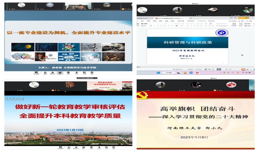 1月9日上午,公司经理孙君顶作了题为《以一流专业建设为契机,全面提升专业建设水平》的报告,他从高等教育高质量发展、本科教育地位、教育根本任务:立德树人等三个方面为与会教师指出了明确方向。下午,科技处副处长王兴国作了题为《学校科研管理与科研政策》的报告,他从学校科研体系考核指标、科研业绩认定和考核政策、学校2021年和2022年科研情况以及学校整体科研政策向与会教师进行了详细解读。